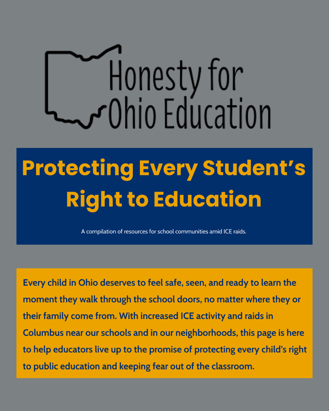 All children have the right to an education in the United States, and schools should be safe places for learning and social development. The ACLU of Ohio has prepared a detailed guide for school administrators, and CWRU’s Schubert Center for Child Studies created a resource guide for anyone working with children. Honesty for Ohio Education curated numerous resources.